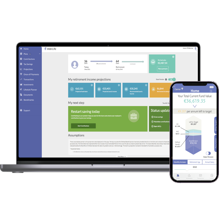 Check the status of your company pension using the MyIrishLife portal. See your projections, make changes and use the planning tools.