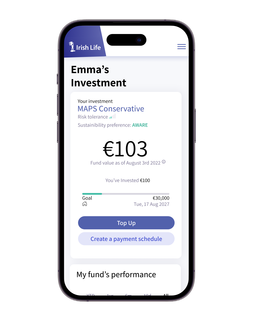 Smart Invest was launched in 2021 by Irish Life. It offers an easy and trusted way for Irish residents to invest from as little as €100 a month. It allows you to invest in a diversified portfolio, based on your needs and managed by experts with over 80 years of experience. You can monitor your investment online or from your phone, and access comprehensive market insights and updates. Start investing today and make your savings work harder.